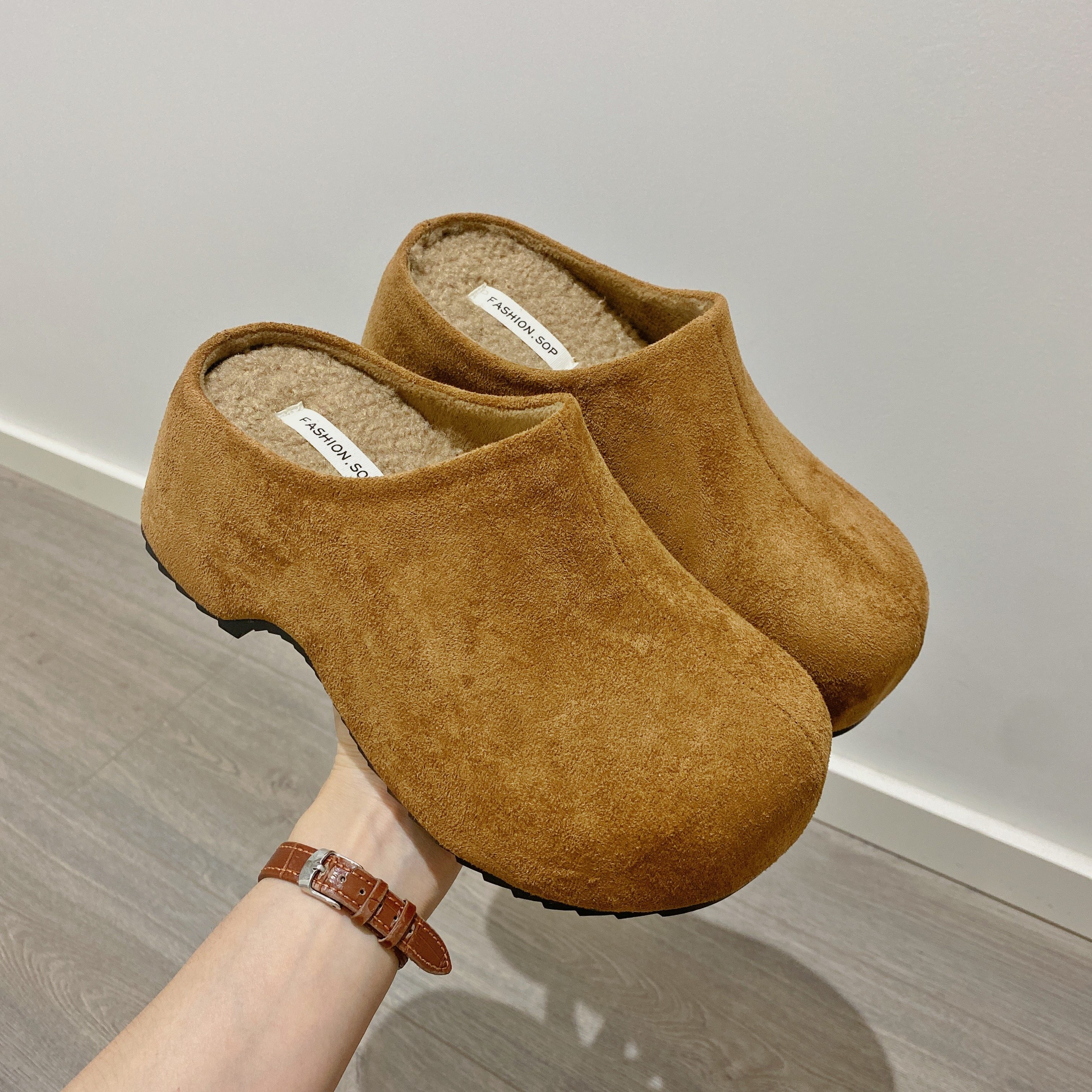 断码处理2024秋冬女鞋韩版百搭外穿一脚蹬懒人毛毛鞋加绒保暖棉鞋