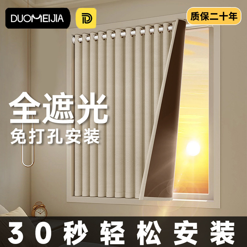 2026新款出租屋窗帘免打孔安装魔术贴遮光防晒阳台卧室飘窗遮光布