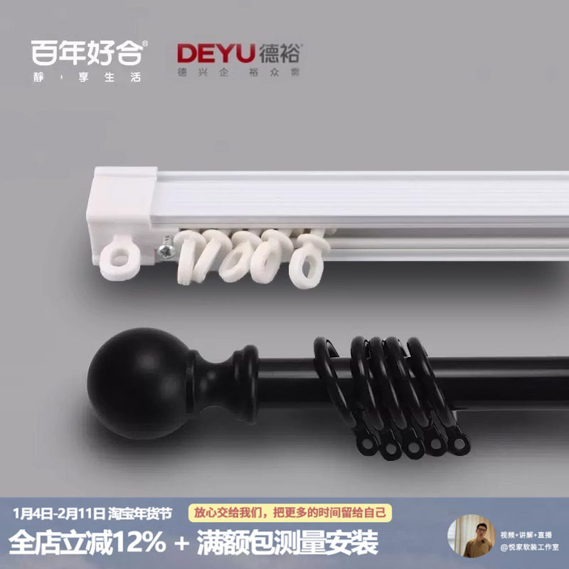 君启窗帘轨道铝合金静音滑轨导轨窗帘杆轴承滑轮道轨单双轨侧顶装