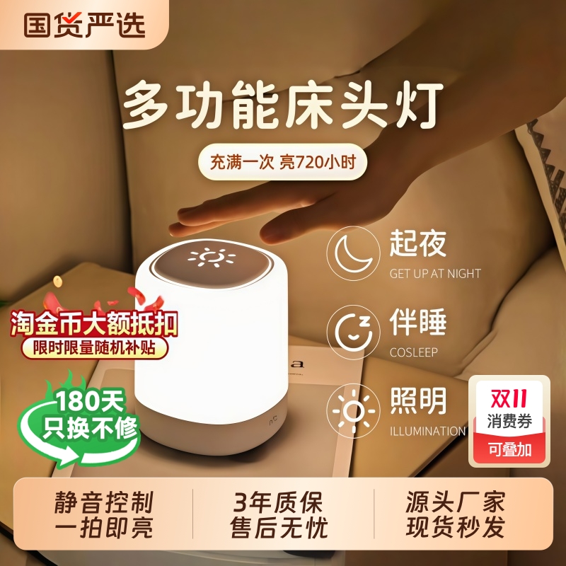 铃铛硅胶拍拍小夜灯卧室床头夜间婴儿喂奶灯睡眠儿童护眼充电台灯