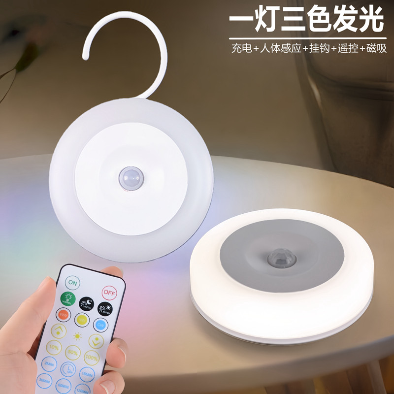 2025新款挂钩小夜灯人体感应三色充电磁吸遥控大学生宿舍喂奶灯