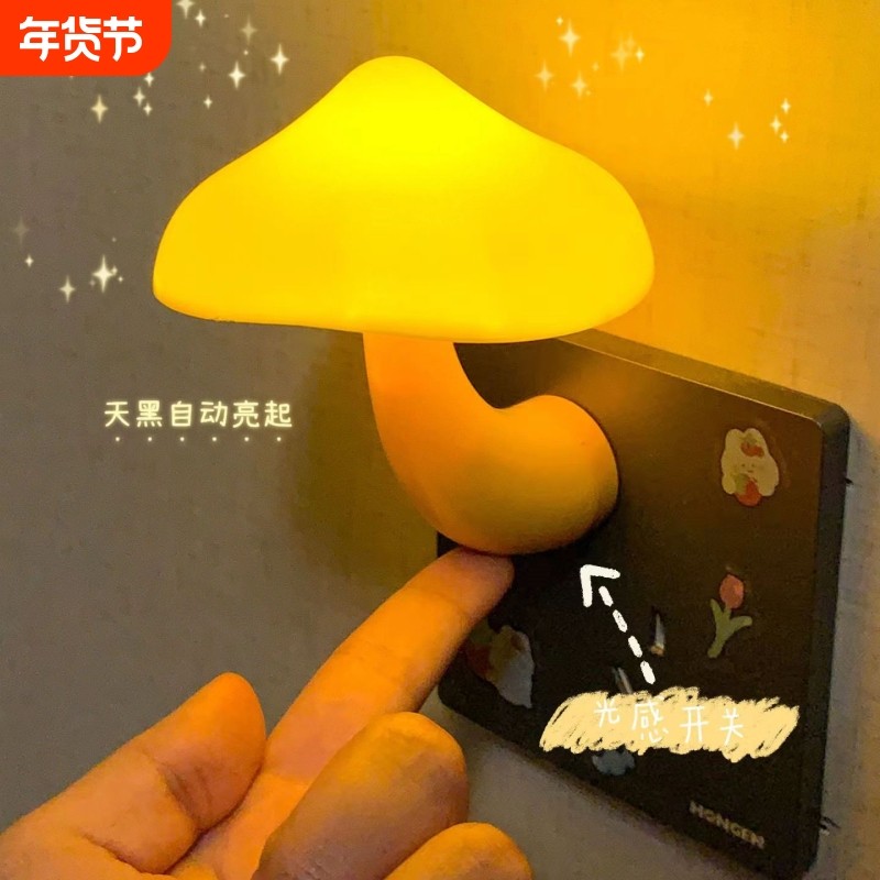 护眼小夜灯创意蘑菇睡眠喂奶夜灯喂奶灯光控感应插电起夜灯墙壁灯