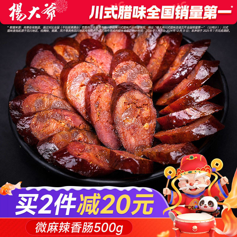 杨大爷微麻辣香肠500克四川味特产腊肠农家自制烟熏味重庆腊肉肠