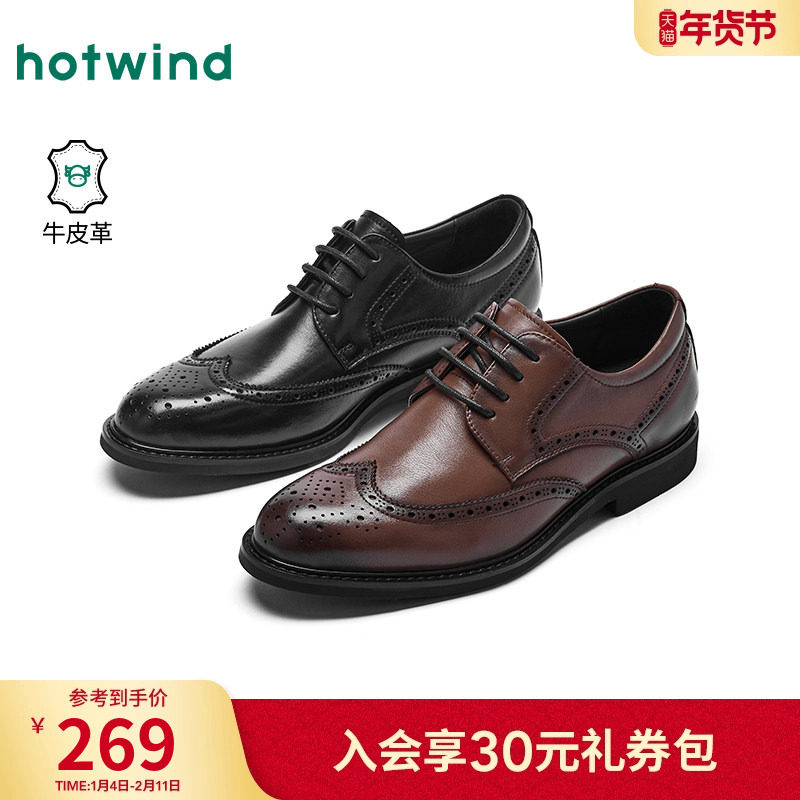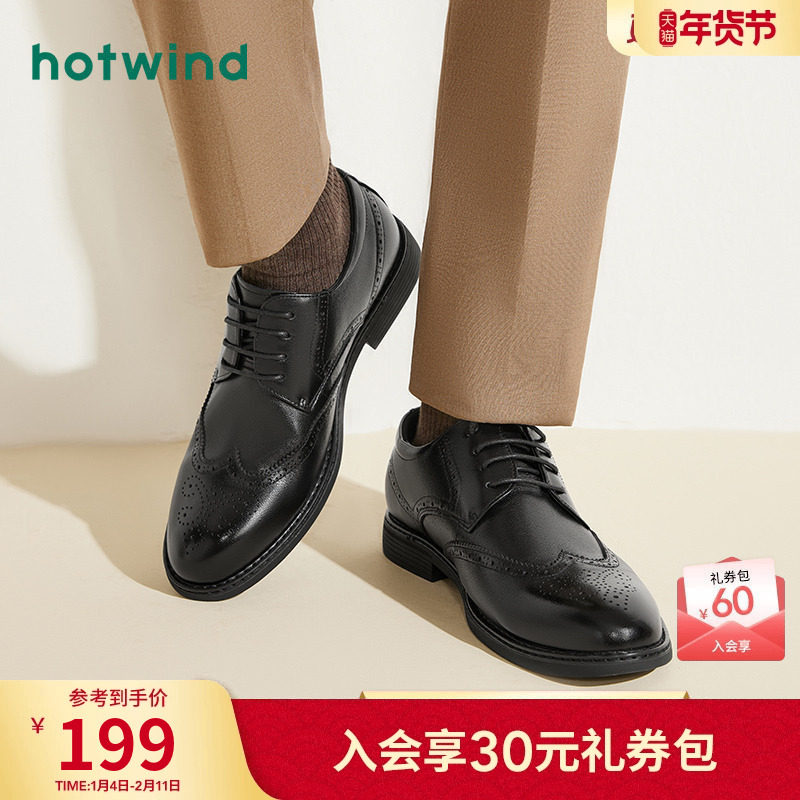 热风男鞋2025年秋季新款男士时尚单鞋低跟正装皮鞋雕花德比鞋婚鞋