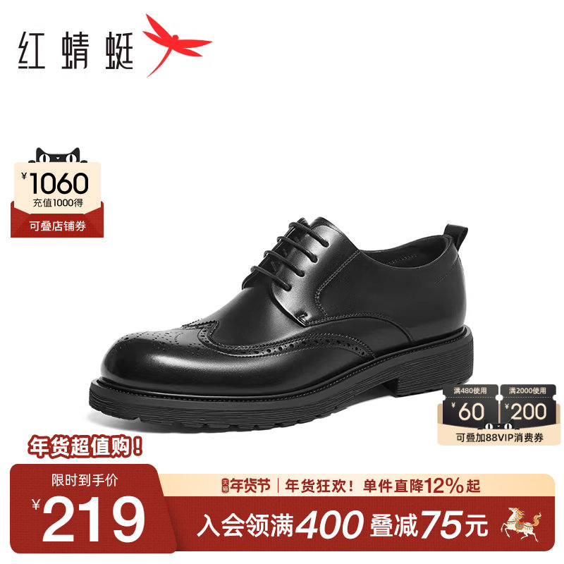红蜻蜓皮鞋男春秋新款男鞋厚底商务正装皮鞋布洛克雕花德比鞋婚鞋