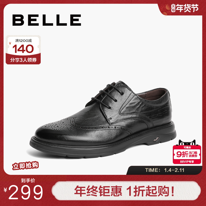 【清仓男鞋】百丽英伦风商务鞋男士牛皮革布洛克雕花通勤正装皮鞋