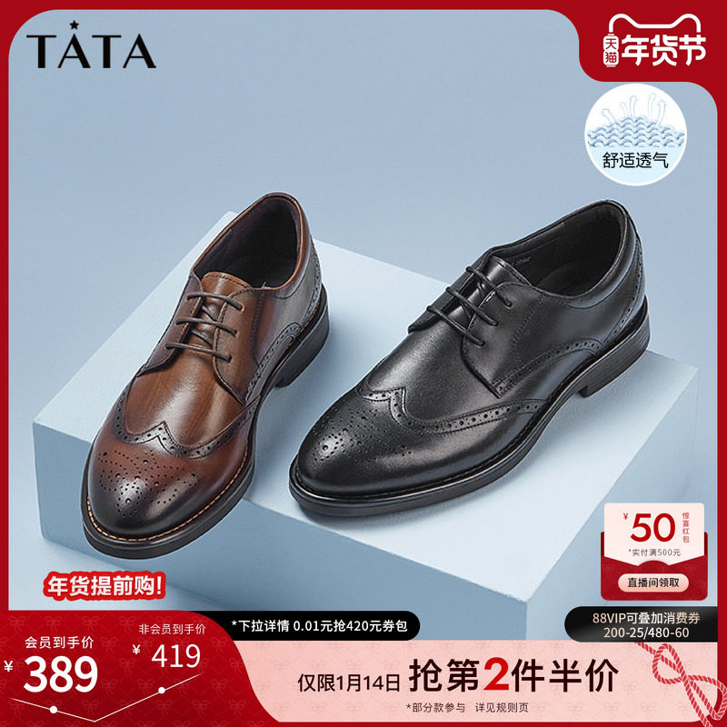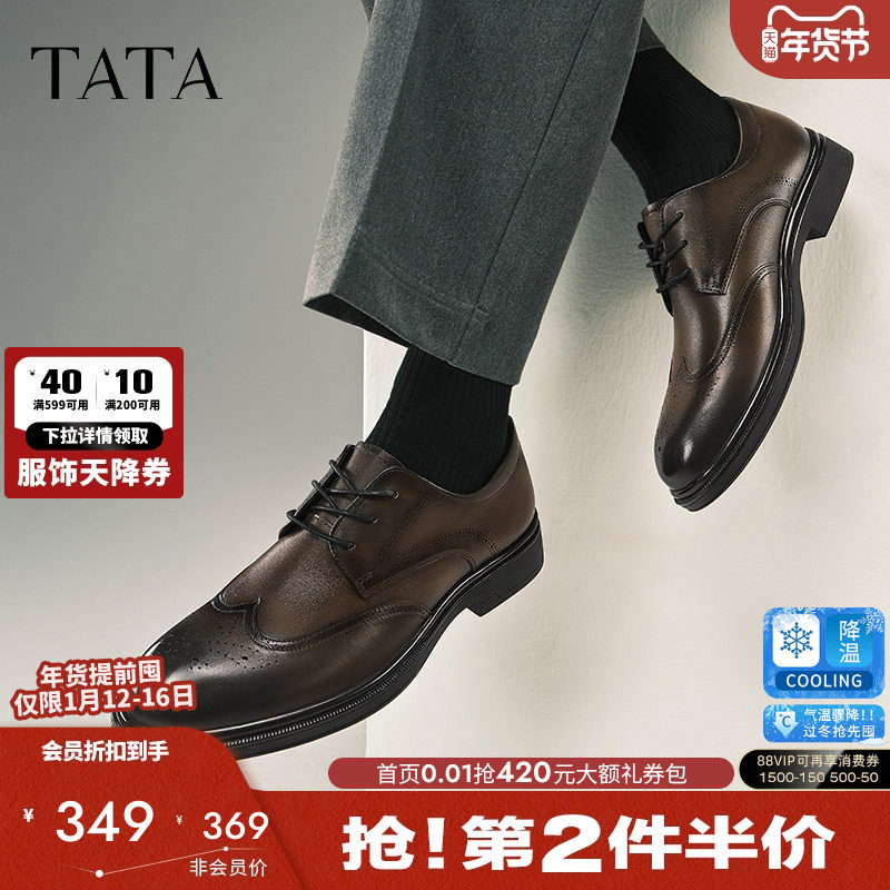 TATA他她雕花布洛克皮鞋男士商务正装鞋结婚新郎鞋2025春210A4AM5