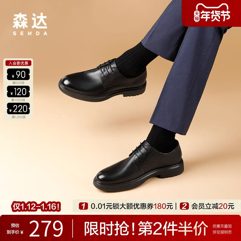 森达男鞋正装皮鞋布洛克雕花商务通勤德比鞋商场同款真皮增高婚鞋