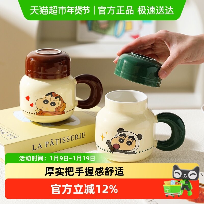 舍里蜡笔小新陶瓷马克杯女生家用办公室水杯卡通动物带盖陶瓷杯子