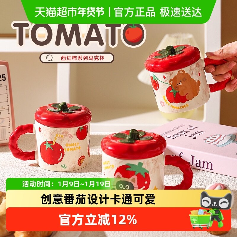 舍里西红柿马克杯带盖陶瓷杯子生日礼物家用水杯办公室早餐咖啡杯