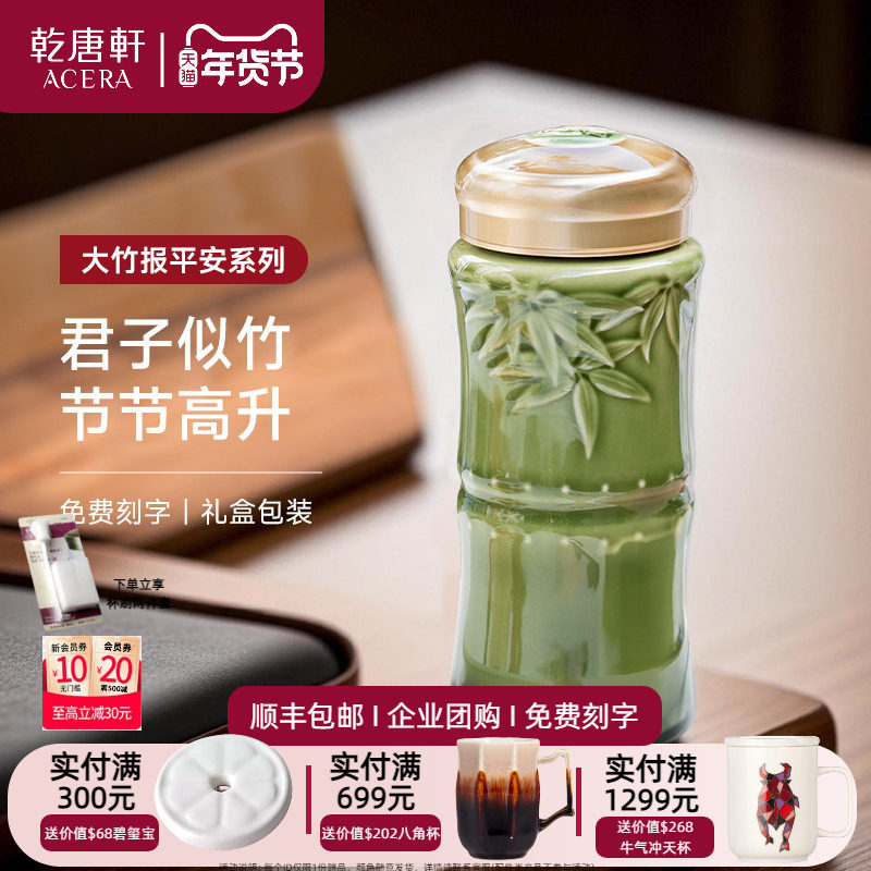 龙泉青瓷办公室水杯茶杯陶瓷小号个人泡茶杯带盖陶瓷杯子喝水杯子