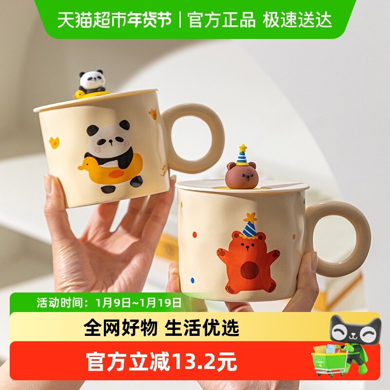 川岛屋可爱马克杯带盖陶瓷杯子家用高颜值喝水杯女生办公室咖啡杯