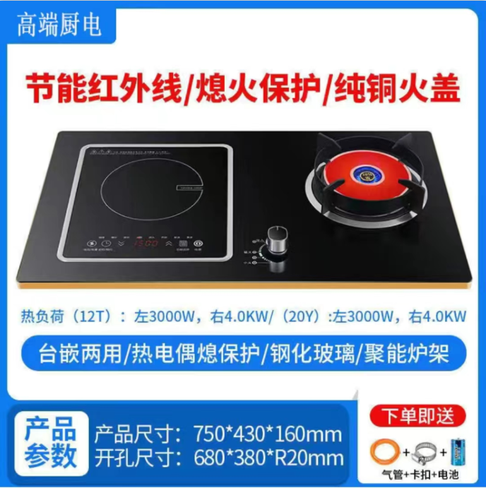 气电两用灶嵌入式电磁炉一体一气电灶燃气灶大尺寸家用电气煤气炉