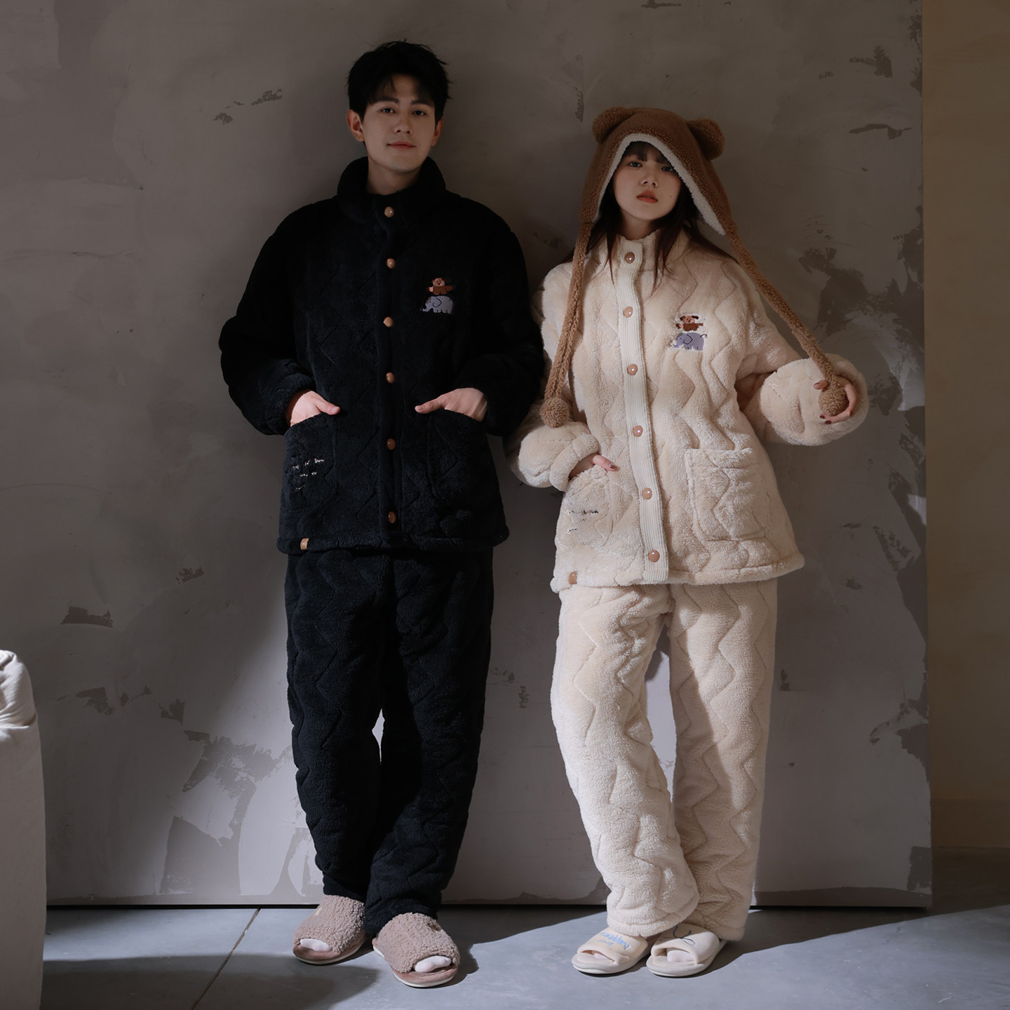 马克公主情侣睡衣女冬季加厚加绒可爱高级感珊瑚绒男士套装家居服