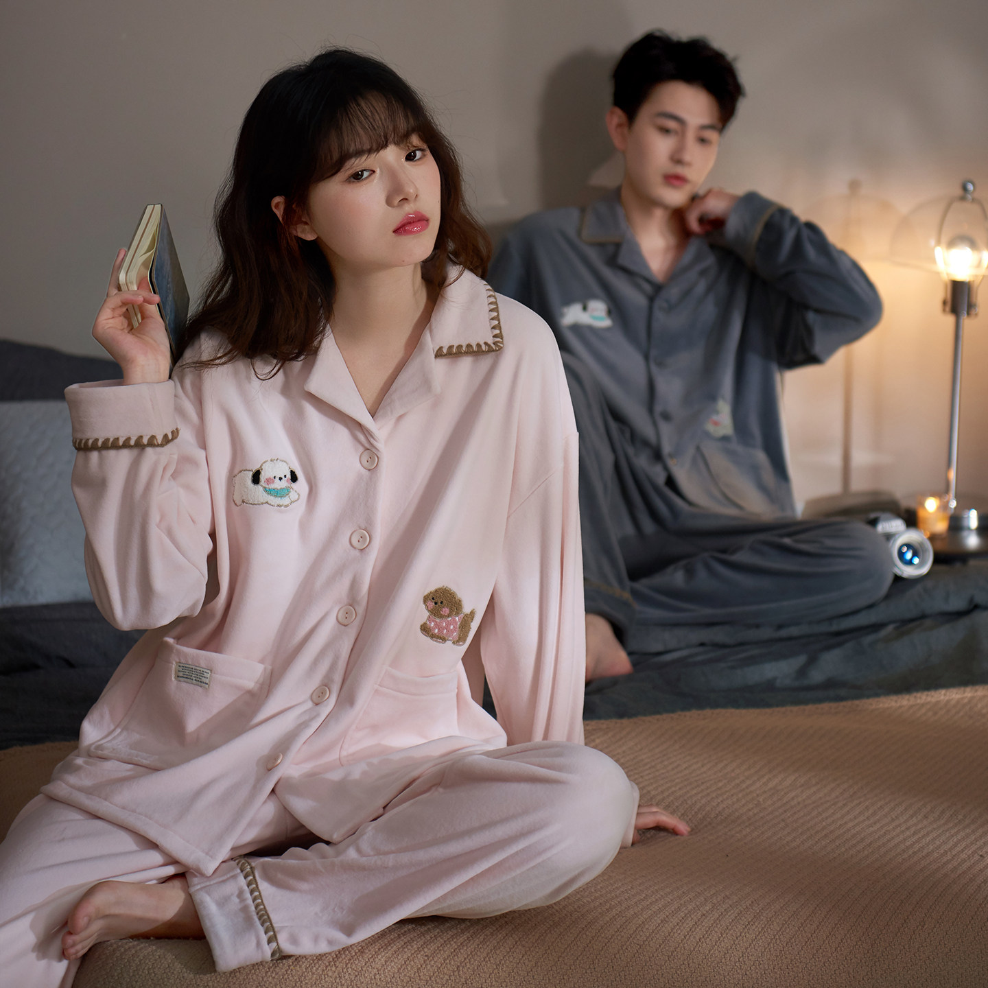 马克公主情侣睡衣女春秋季新款可爱小狗纯棉长袖男士可外穿家居服