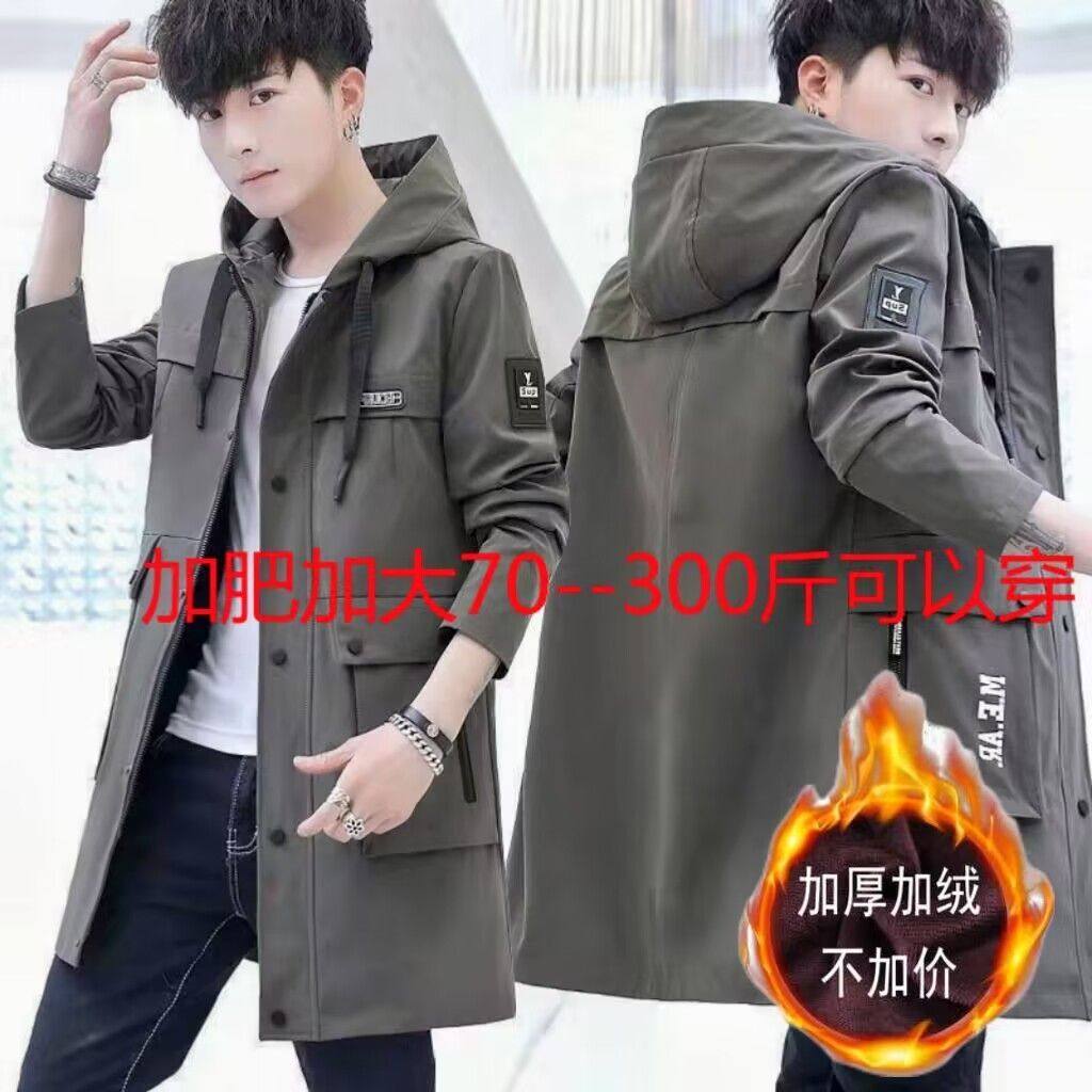 - 中长款加绒加厚风衣男