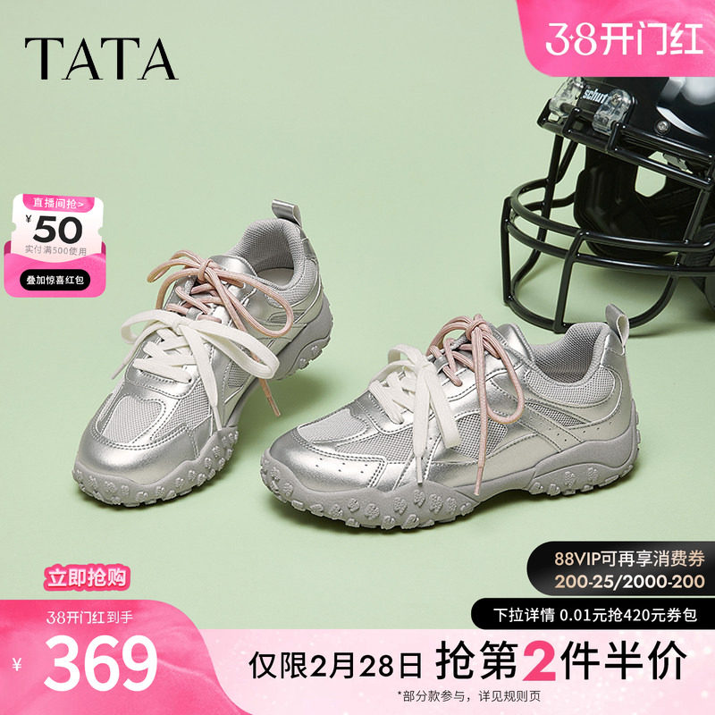 TATA他她银色休闲运动鞋女鞋复古阿甘鞋2025德训鞋新款7E722AM5