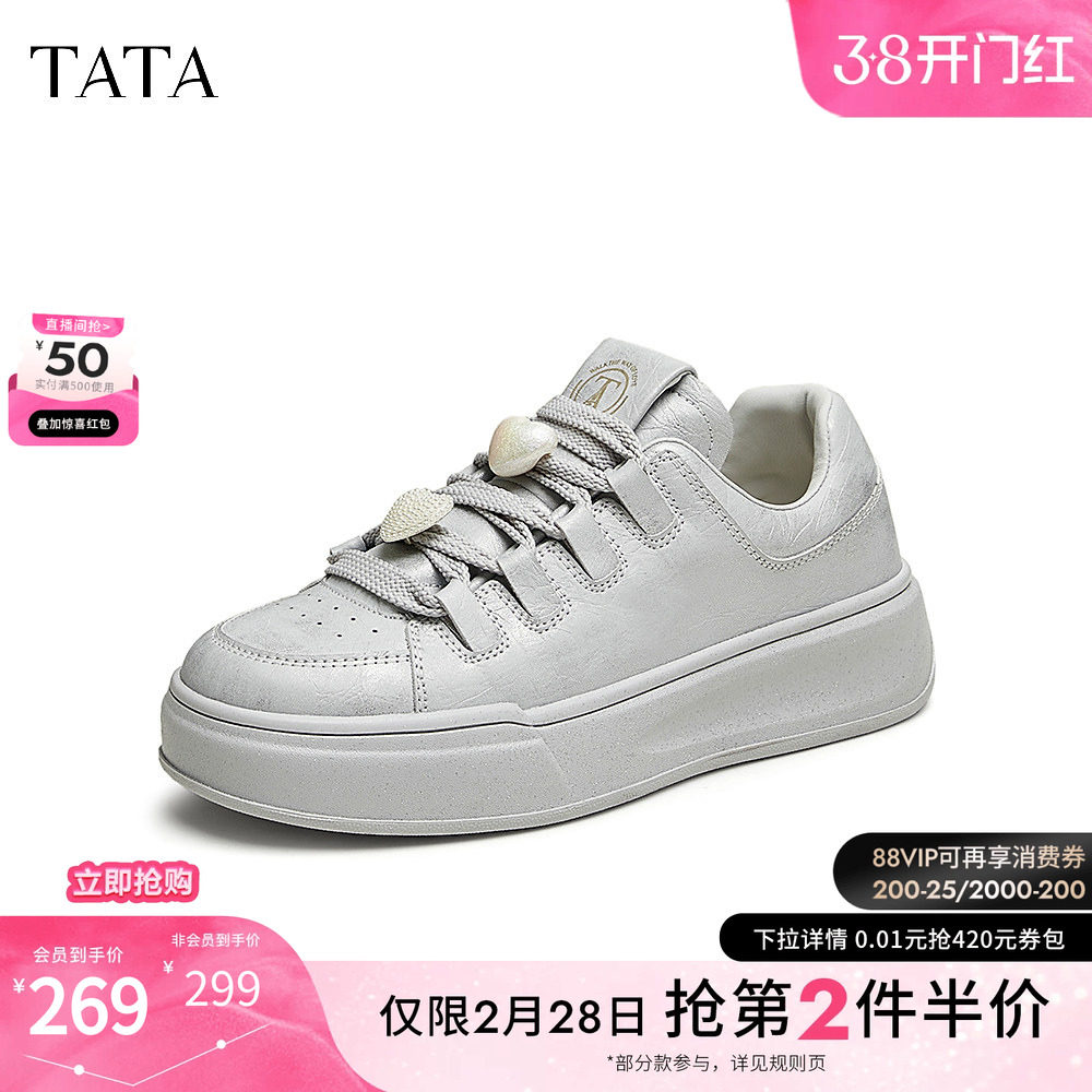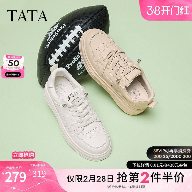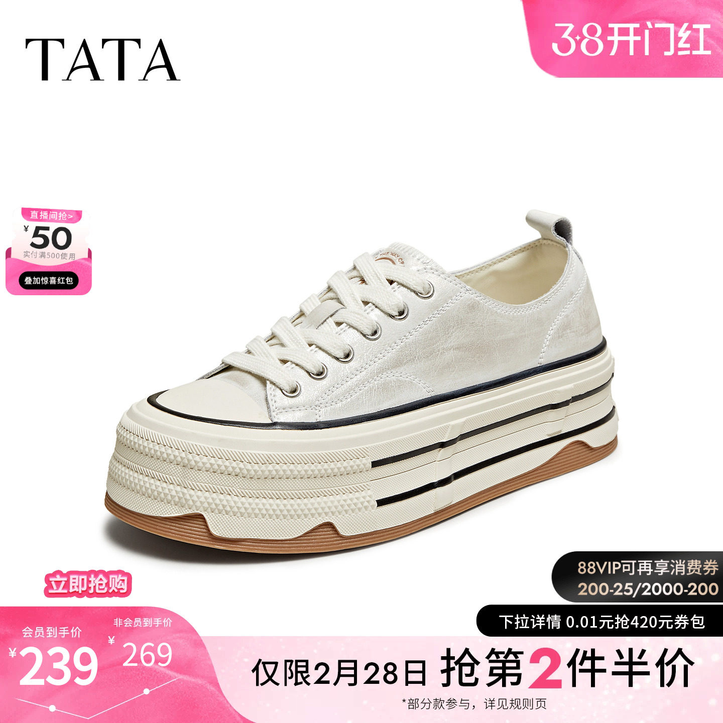 TATA他她厚底休闲板鞋女鞋增高百搭运动小白鞋2025春新款CP901AM5