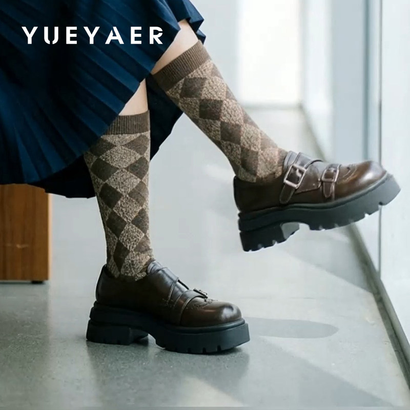 月芽儿英伦风厚底乐福鞋女2026新款黑色鞋子百搭一脚蹬小皮鞋女鞋