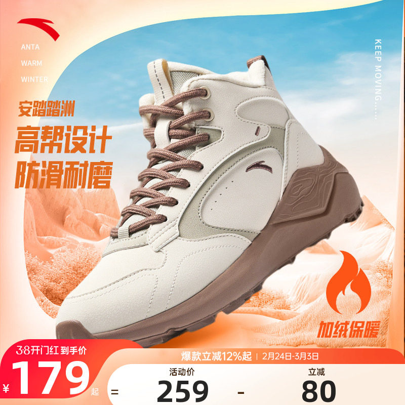 安踏踏洲棉鞋女鞋2026新款春季加绒保暖大棉鞋皮面防水休闲运动鞋