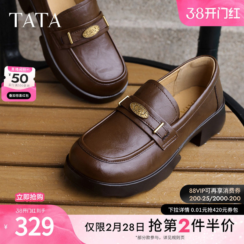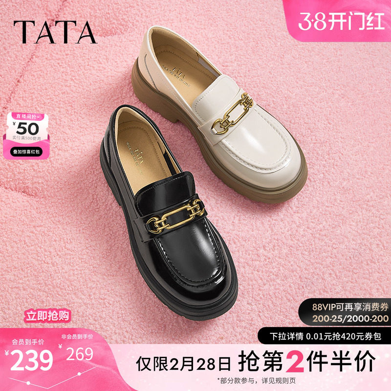 Tata他她英伦厚底乐福鞋女鞋浅口单鞋小皮鞋2024冬季新款WIZ12CA4