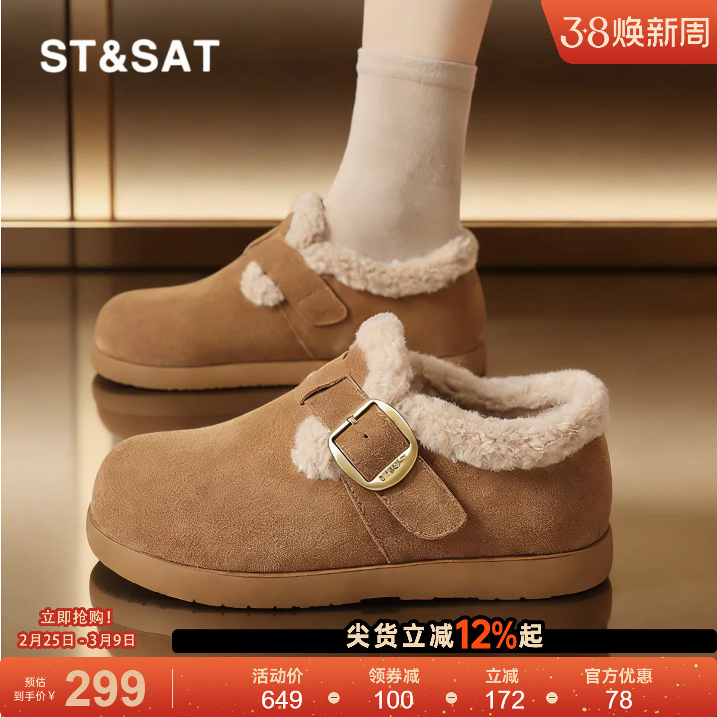 星期六保暖勃肯鞋女鞋秋冬新款真皮加绒棉鞋防滑毛毛鞋女士雪地靴