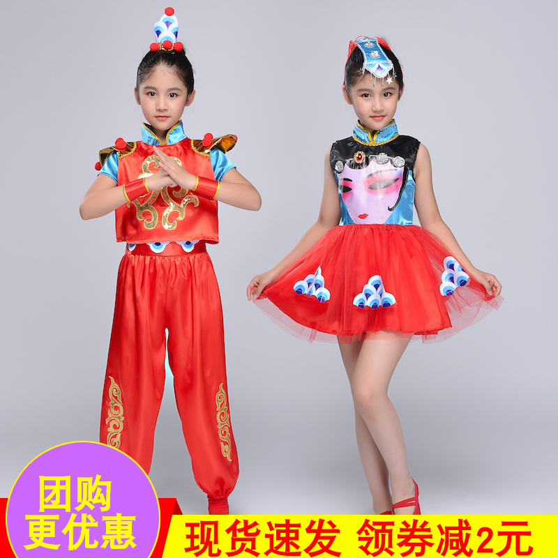 说唱脸谱儿童演出服京剧川剧变脸说好儿郎戏曲表演服六一舞蹈服装