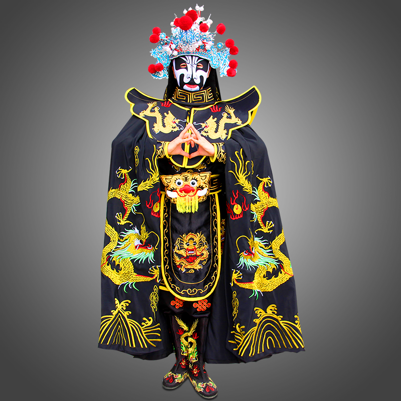 川剧变脸服装道具整套舞蹈服出租 四川变脸衣服全套刺绣黑色租赁