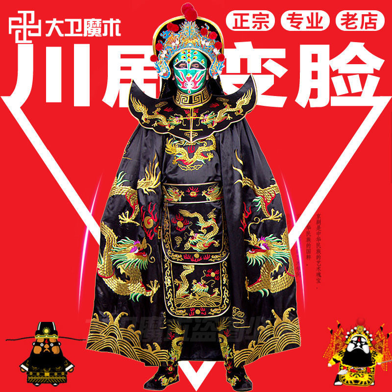 大卫魔术川剧变脸服装脸谱刺绣变脸衣服盔头斗篷脸皮靴子13张脸谱