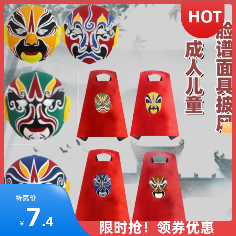 京剧脸谱面具 儿童国风可戴幼儿园戏曲装饰戏剧说唱全脸川剧变脸