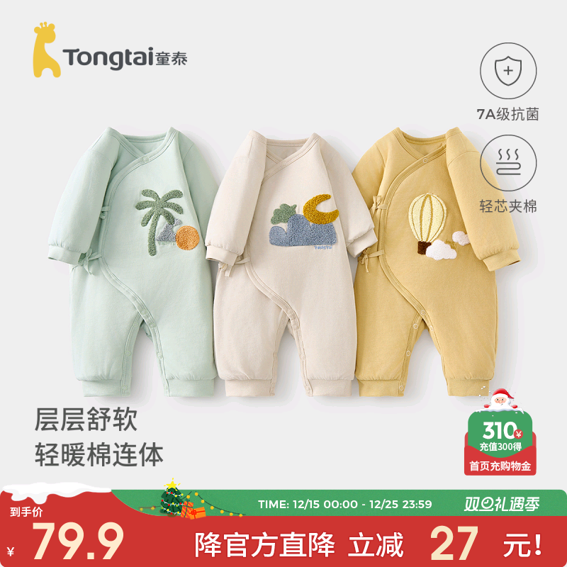 童泰连体衣婴儿衣服秋冬夹棉保暖闭裆棉衣男女宝宝对开哈衣爬爬服