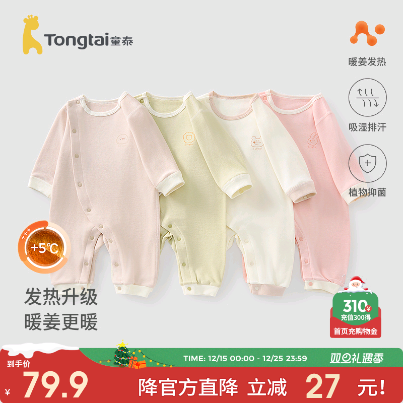 童泰连体衣婴儿衣服秋冬a类保暖系带偏开0-6月宝宝护肚新生儿哈衣