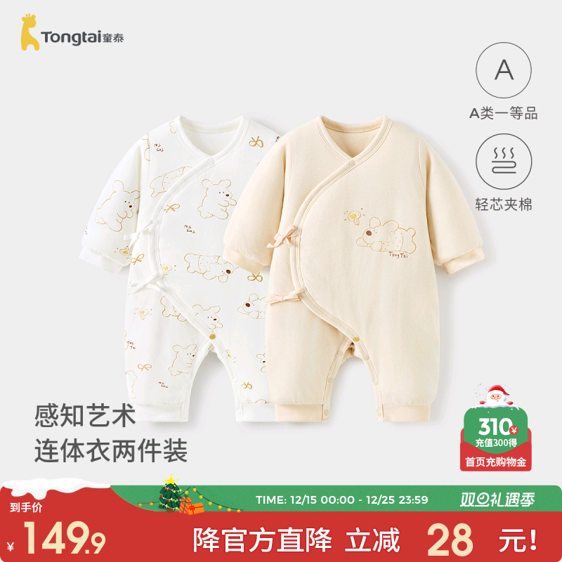 童泰新生婴儿连体衣秋冬季保暖宝宝衣服初生儿纯棉蝴蝶哈衣2件装