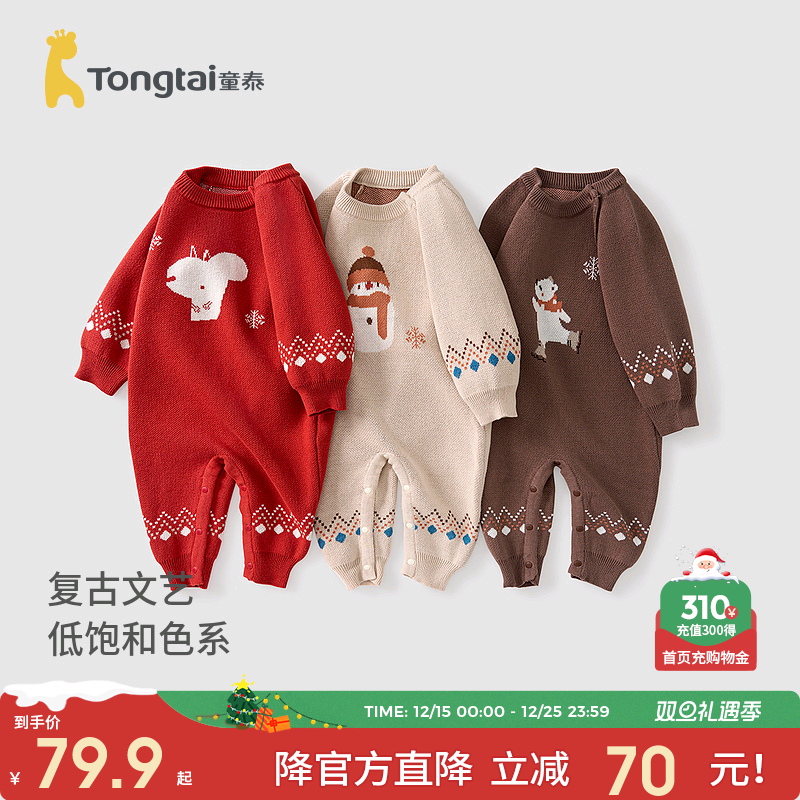 童泰婴儿连体衣秋季纯棉宝宝衣服儿童针织哈衣男女童休闲外出毛衣