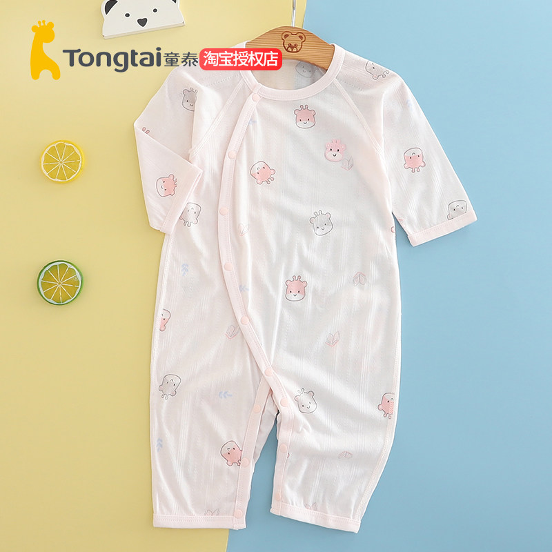 童泰连体衣春夏季婴儿长袖哈衣空调服男女童爬服睡衣莫代尔薄蛤衣