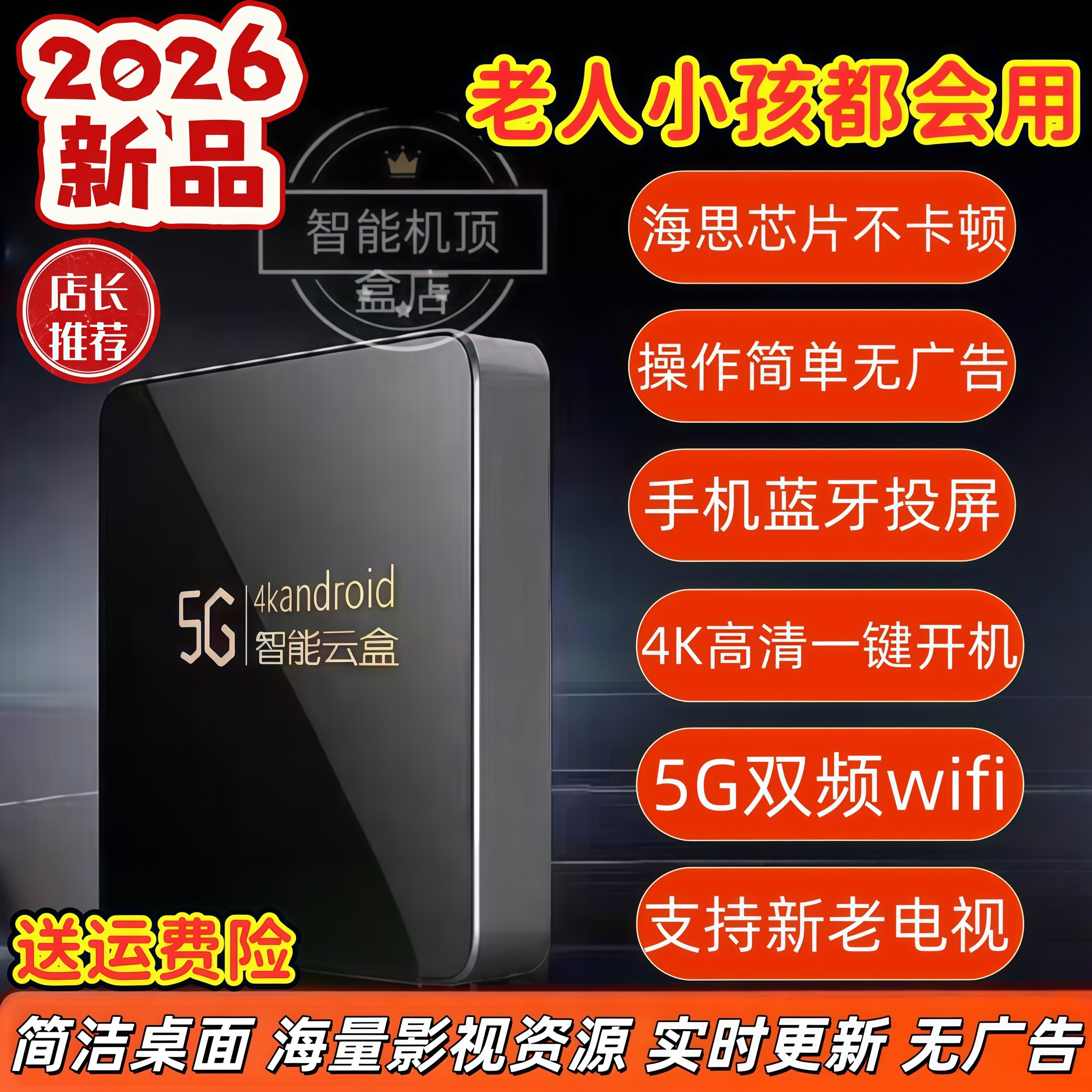2026款高清网络电视机顶盒免费投屏无线wifi全网通电视盒子老人用