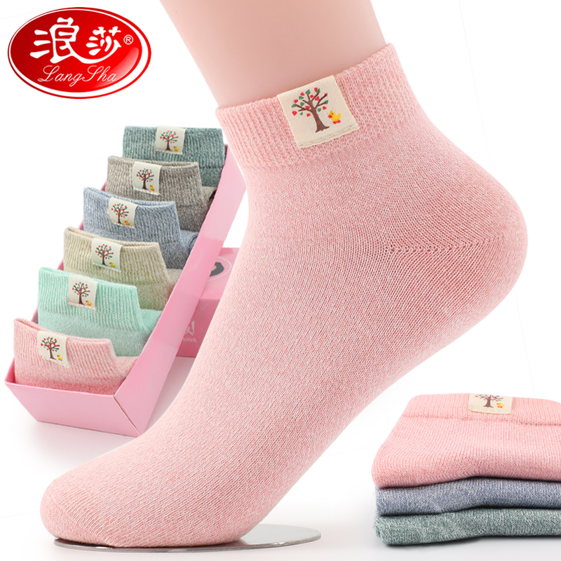 浪莎女袜子春秋款全棉袜运动短袜浅口中筒防臭纯棉女士棉袜秋冬季