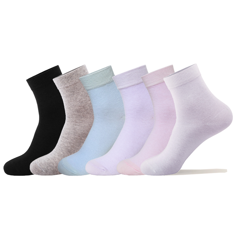 6双浪莎女袜子纯棉中筒春秋防臭短袜学院风100%全棉女袜秋冬长袜