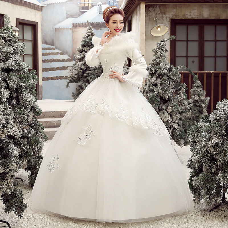 冬季婚纱礼服2021新款新娘结婚秋冬款齐地长袖保暖加厚冬天长袖女