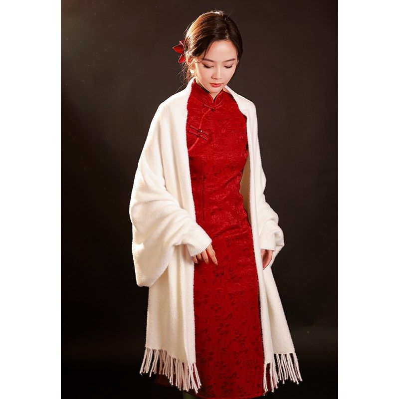 新娘结婚旗袍毛披肩秋冬季婚纱披风白色礼服女外套斗篷敬酒服外搭