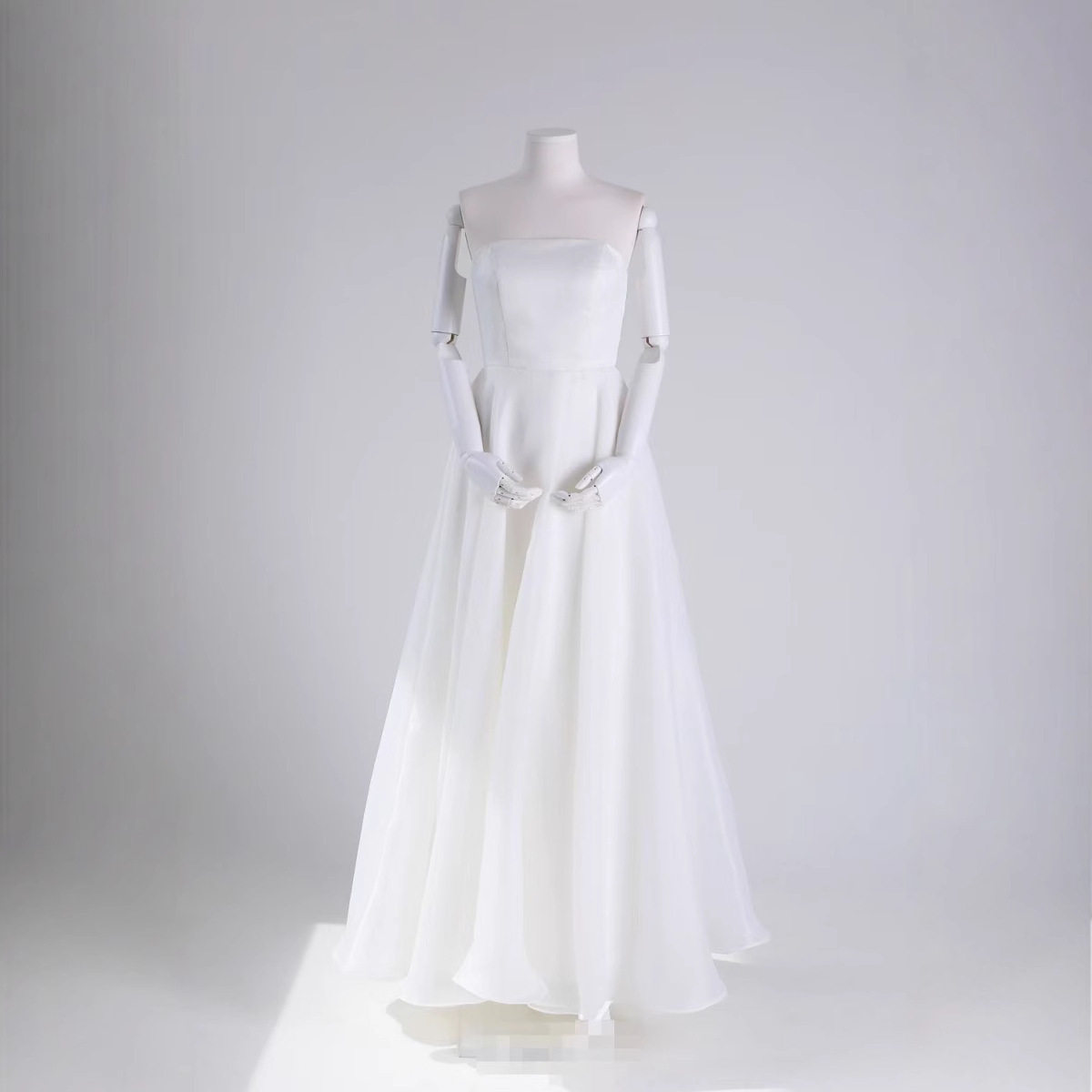 法式轻婚纱2026冬季新款白色抹胸缎面旅拍迎宾简约端庄大气礼服