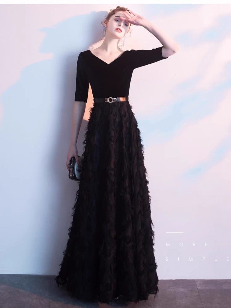礼服黑色主持人宴会高贵大气秋冬季高端轻奢小众高级感艺考成人礼