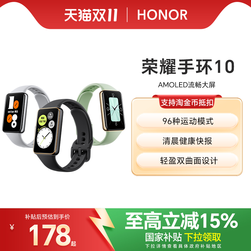 【政府补贴15%】荣耀手环10智能手环 具备健康晨报 健康监测长续航多功能运动监测手表