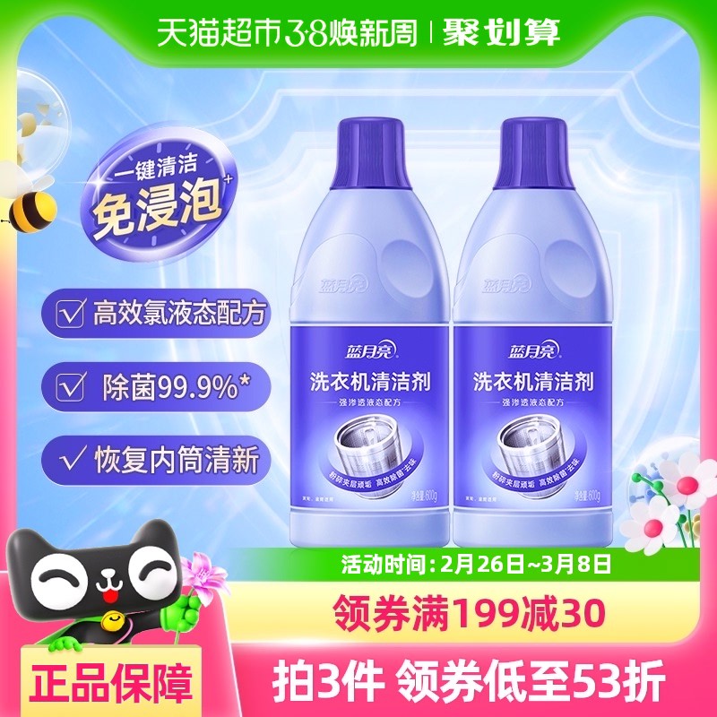 蓝月亮洗衣机清洁剂滚筒式可用600g*2瓶清洗剂全自动强力除垢除菌
