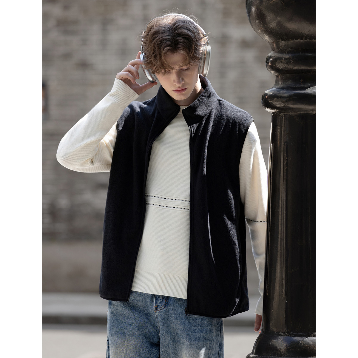 唐狮冬季男款摇粒绒马甲开衫男背心外穿内搭加厚男士上衣保暖TD