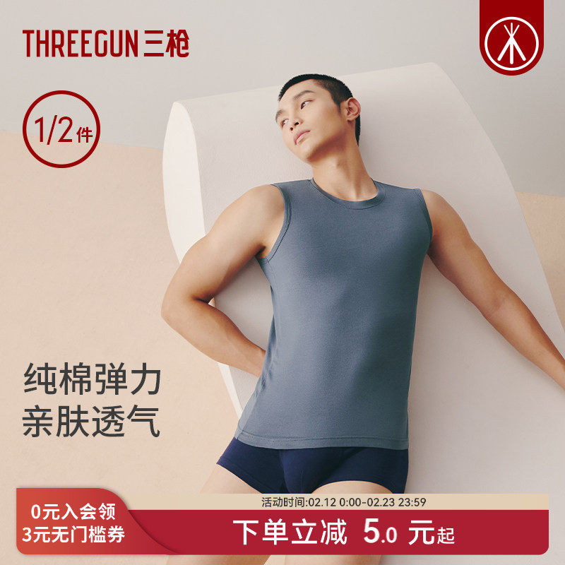 [1/2件]三枪男背心纯棉亲肤内衣无袖坎肩运动弹力棉打底2026春夏