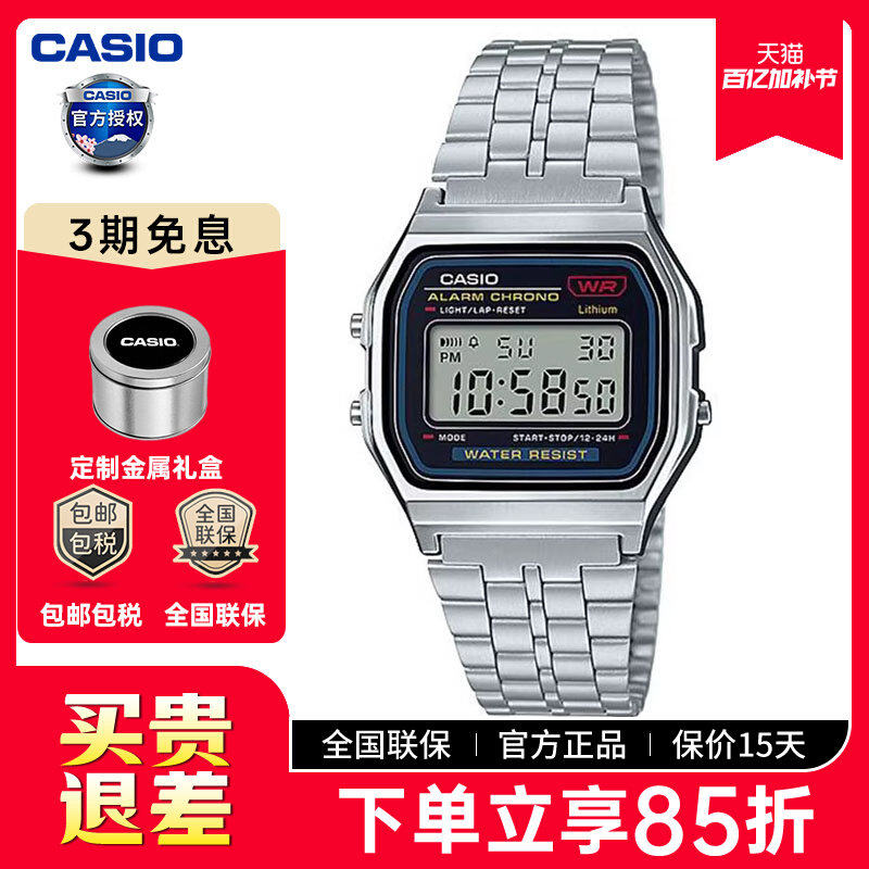 casio卡西欧小方块手表男正品小银块防水运动学生电子表A158/A159