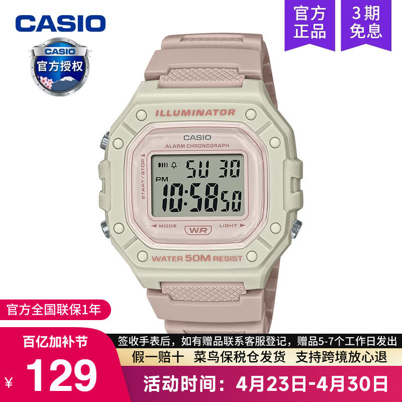 casio卡西欧手表女士运动款学生石英小方块防水电子表W-218HC-4A2