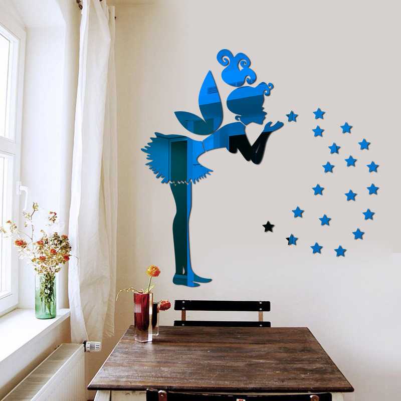 新款直销小天使仙女星星 镜面墙贴 3d立体自产自销 仙女60x33cm+3