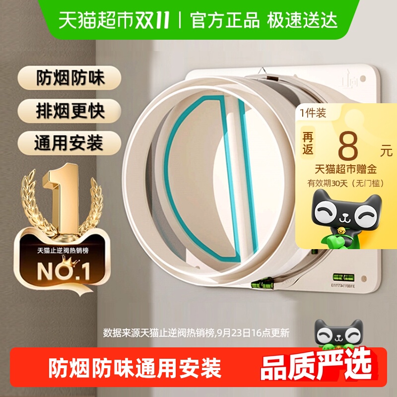 油烟机止逆阀厨房烟道止回阀专用排烟管单向止烟卫生间变径防烟宝
